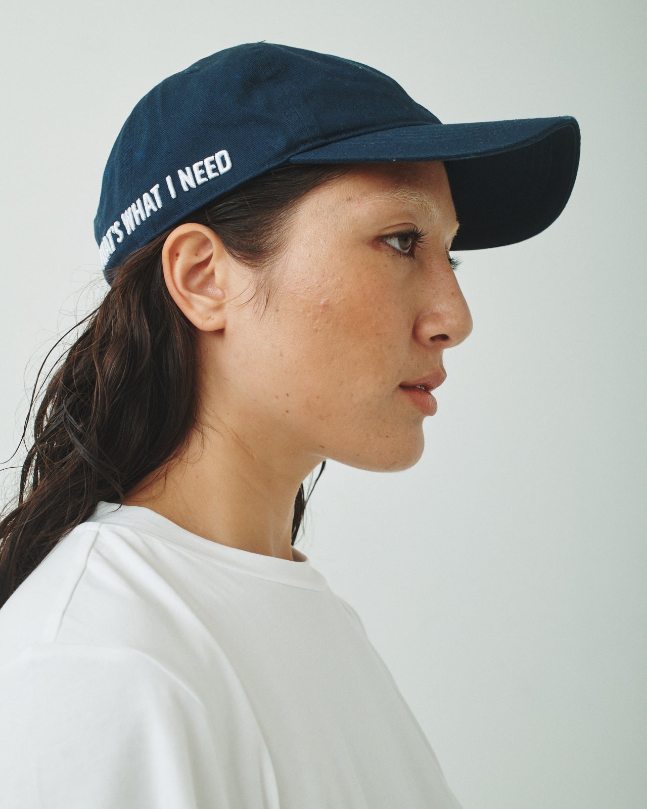 Adjustable cap with a hideaway back strap with T.W.I.N. (That's What I Need) embroidery on the back. Clean design with subtle standout details.