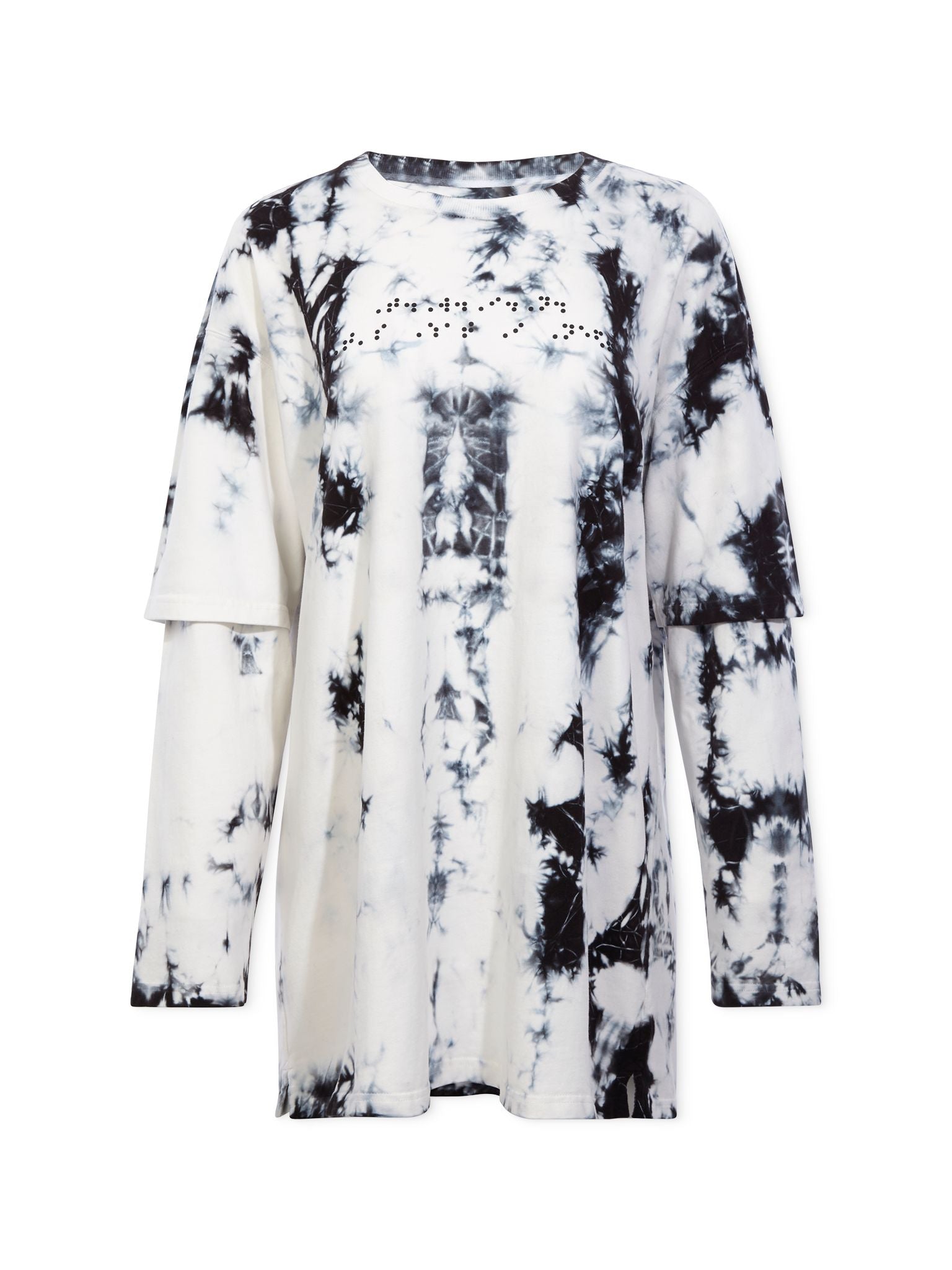 The BRAILLE LAYERED T-SHIRT features 3-D embroidered Braille code spelling “T.W.I.N. (That’s What I Need)” across the chest, marking our commitment to adaptive fashion. We know it’s a small step, but we hope you’ll see it as the first of many in our effort to bridge the gap between fashion and ability. If you couldn’t already tell it was your T.W.I.N. shirt by the quality and softness of our signature 100% deadstock Combed Cotton fabric, then let the Braille be your guide to our first ever adaptive T.W.I.N. piece. This style features layered double sewn-in sleeves, an oversized boxy cut, and ribbed crewneck collar. This style is intentionally oversized—one size fits most.