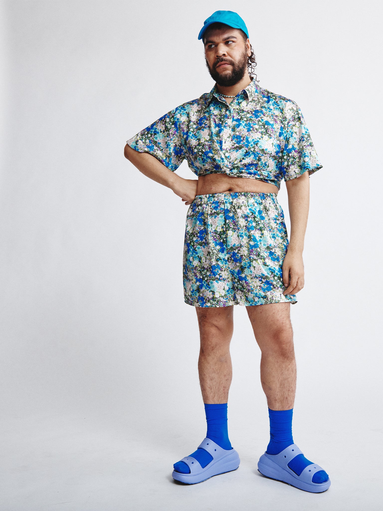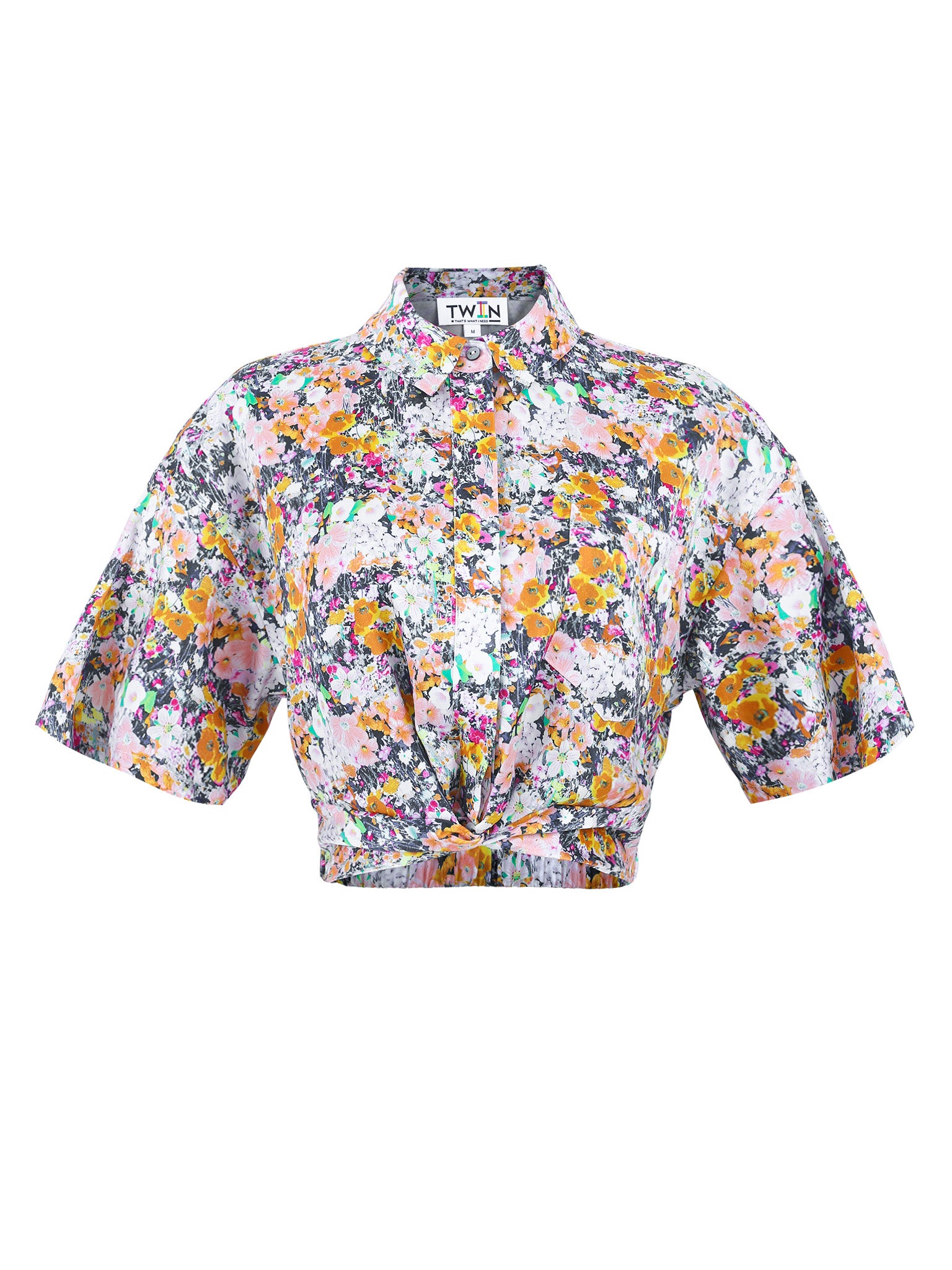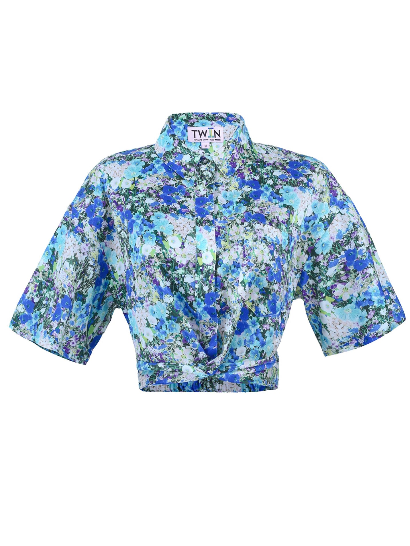 The GARDEN KNOT CROP TOP is your answer to a sophisticated summer look. This collared, short sleeve button-down is perfectly tied at the waist with an elastic waistband, so you don't have to stress about tying it yourself. The sleeves are longer and loose, giving it a boxy yet polished look.