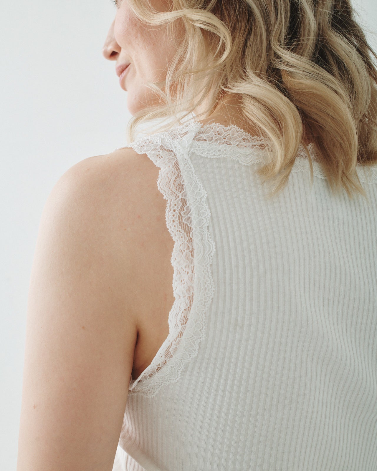 Our take on the classic cotton ribbed tank, but elevated. Because everything is better with a little lace. Perfect for layering, or solo wear. It's also bra friendly (if you care!).