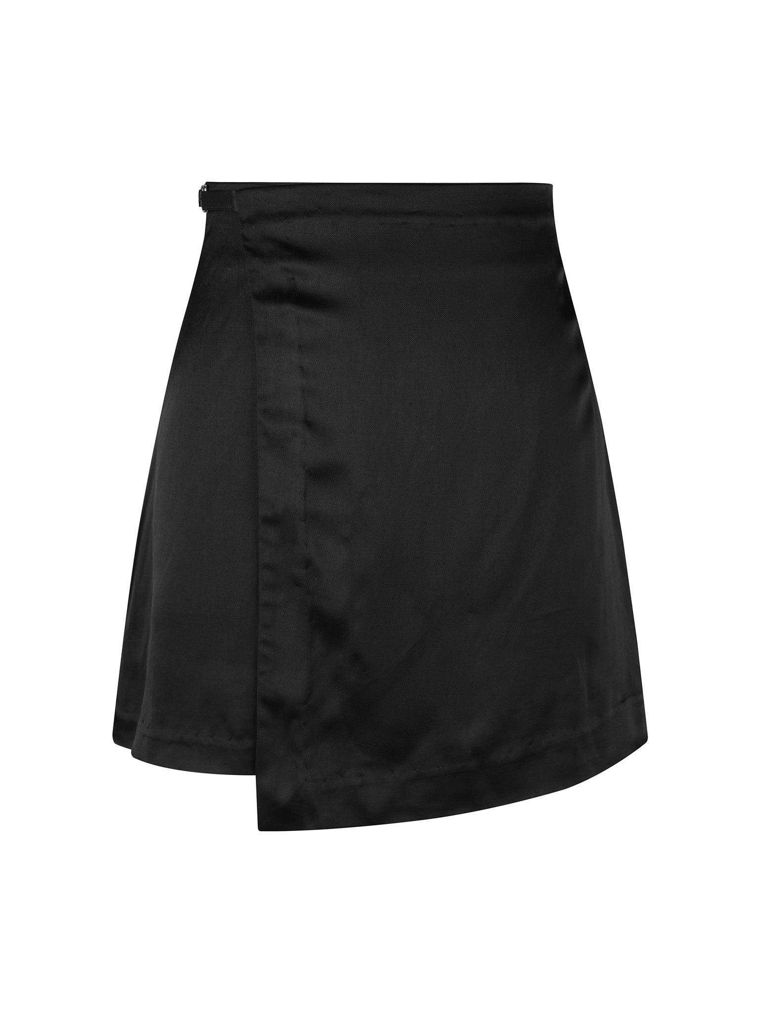 The SATIN SKORT looks like a skirt, but is cartwheel safe. To be clear: from all angles this looks like a skirt until you lift up the front wrap. The adjustable D-ring closure ensures a perfect fit.