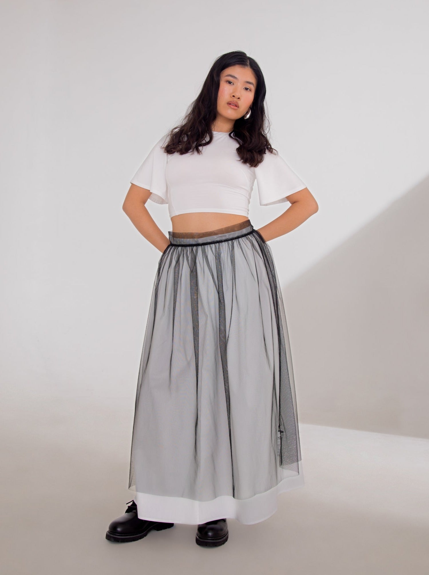 Imagine if Anne of Green Gables wore TWIN, and then make it a reality. The TULLE APRON SKIRT is the perfect layering piece whether you're living out your prairie fantasy or layering over or under any outfit. The tie waist and open back allows this gathered A-line shaped skirt to be easily adjustable and multi-functional. Adjustable fit.