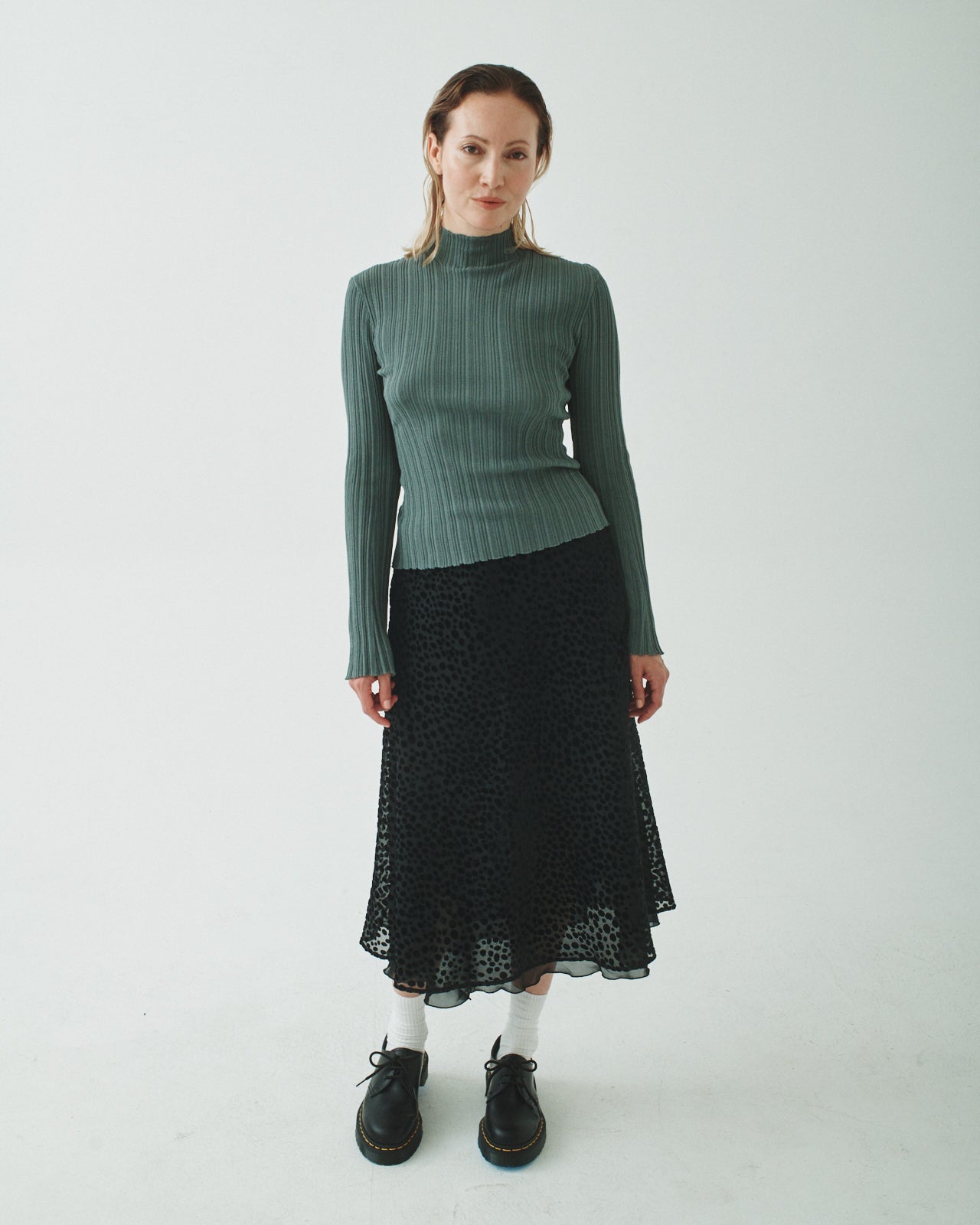 Light, but not too light. Textured, but not too textured. The PLEATED MOCK NECK checks all the boxes. A styling essential, it can be worn on its own or styled up. And as always...skin friendly. This style fits true to size. Ryan is wearing a size M in Black, and Franchesca is wearing a size M in Sage.