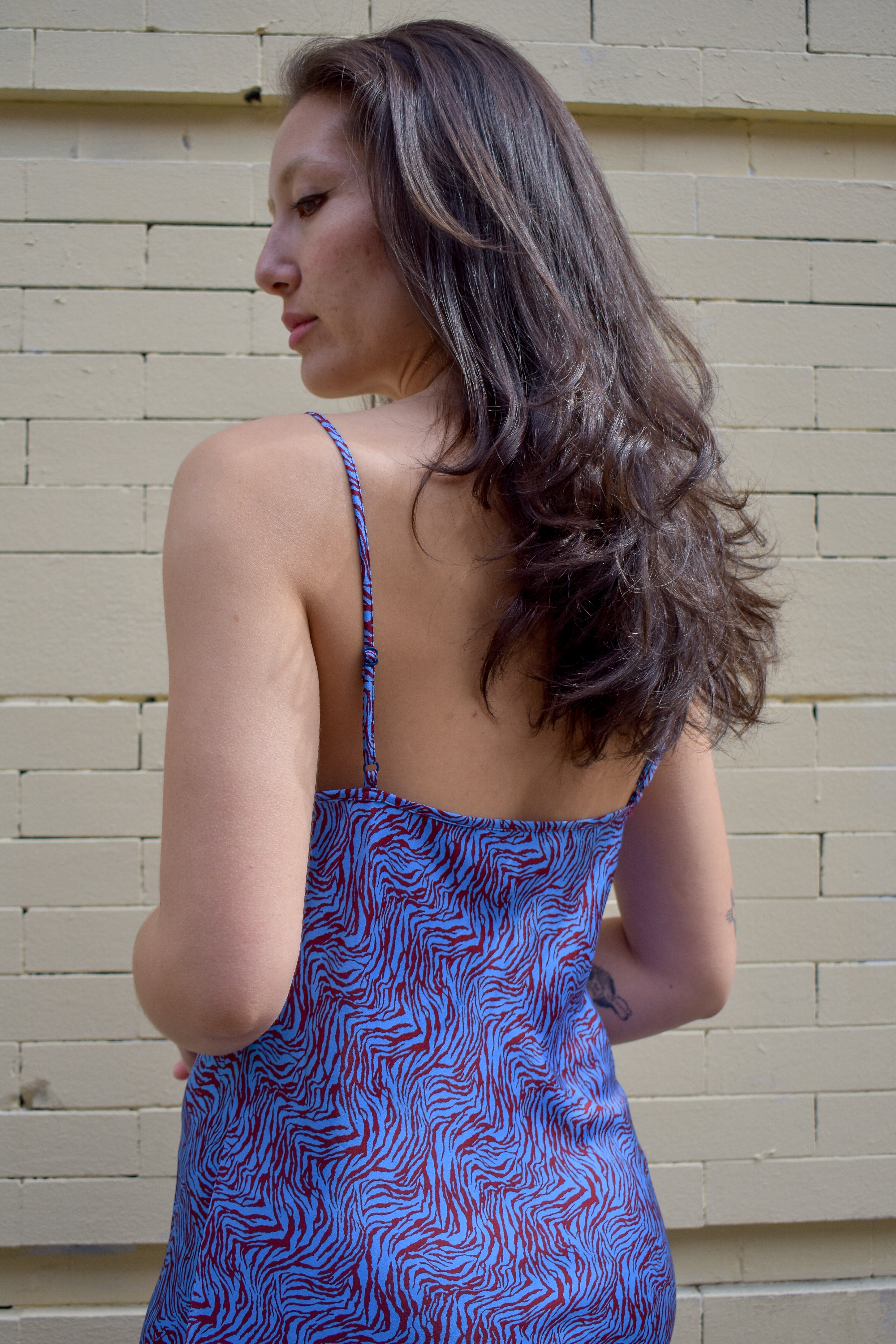 Crafted from deadstock 100% Polyester for a lightweight, fluid feel with soft movement. This style fits true to size. Ryan wears a size M in Blue/Burgundy Zebra Machine wash cold, hang to dry. Imported.
