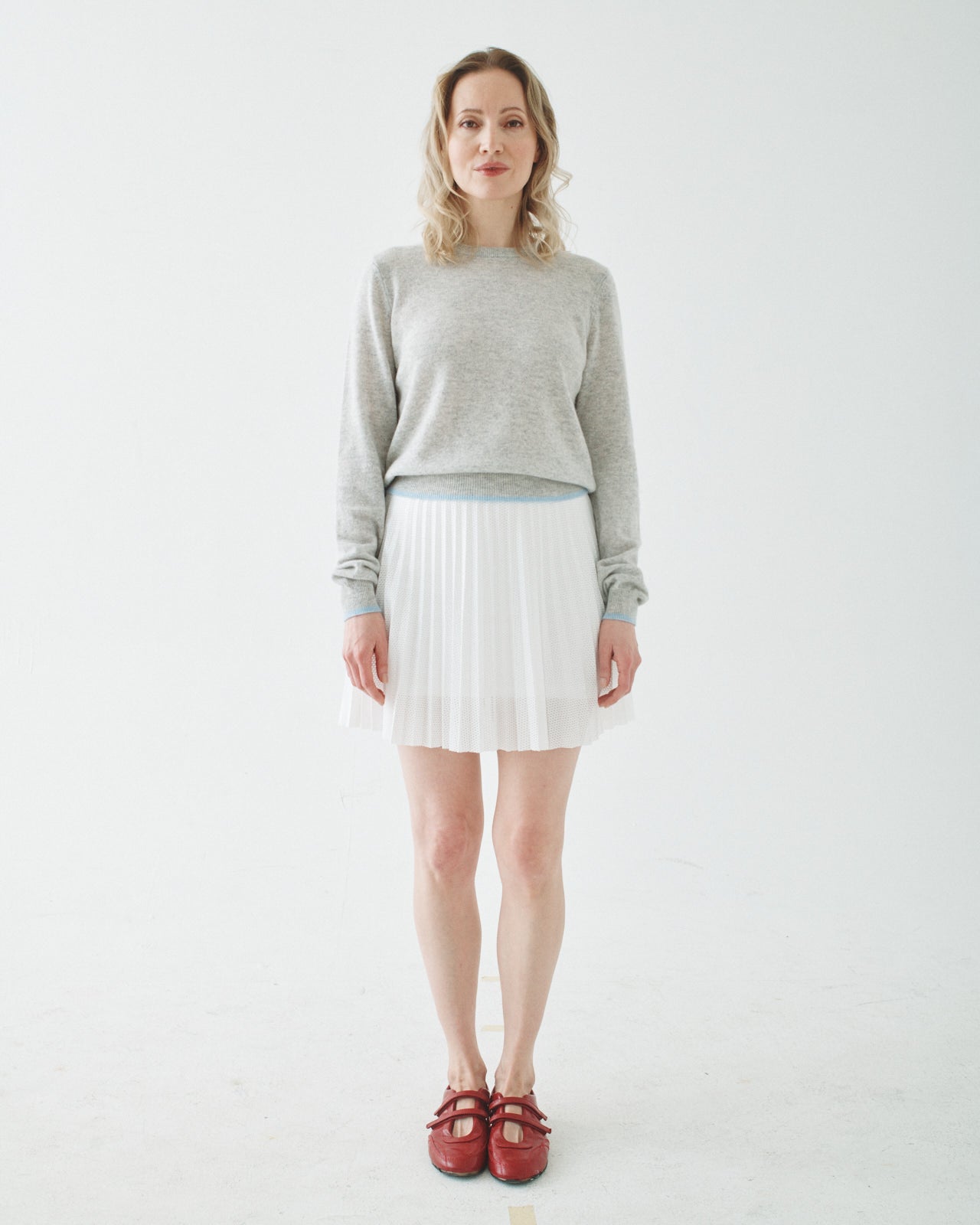 This 17" mini skirt features sharp knife pleats for a structured, feminine silhouette. Fully lined with a discreet zipper closure, it's breathable and designed for all-day comfort with a polished finish.