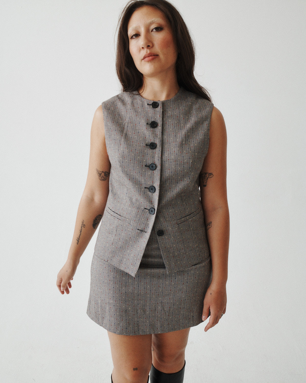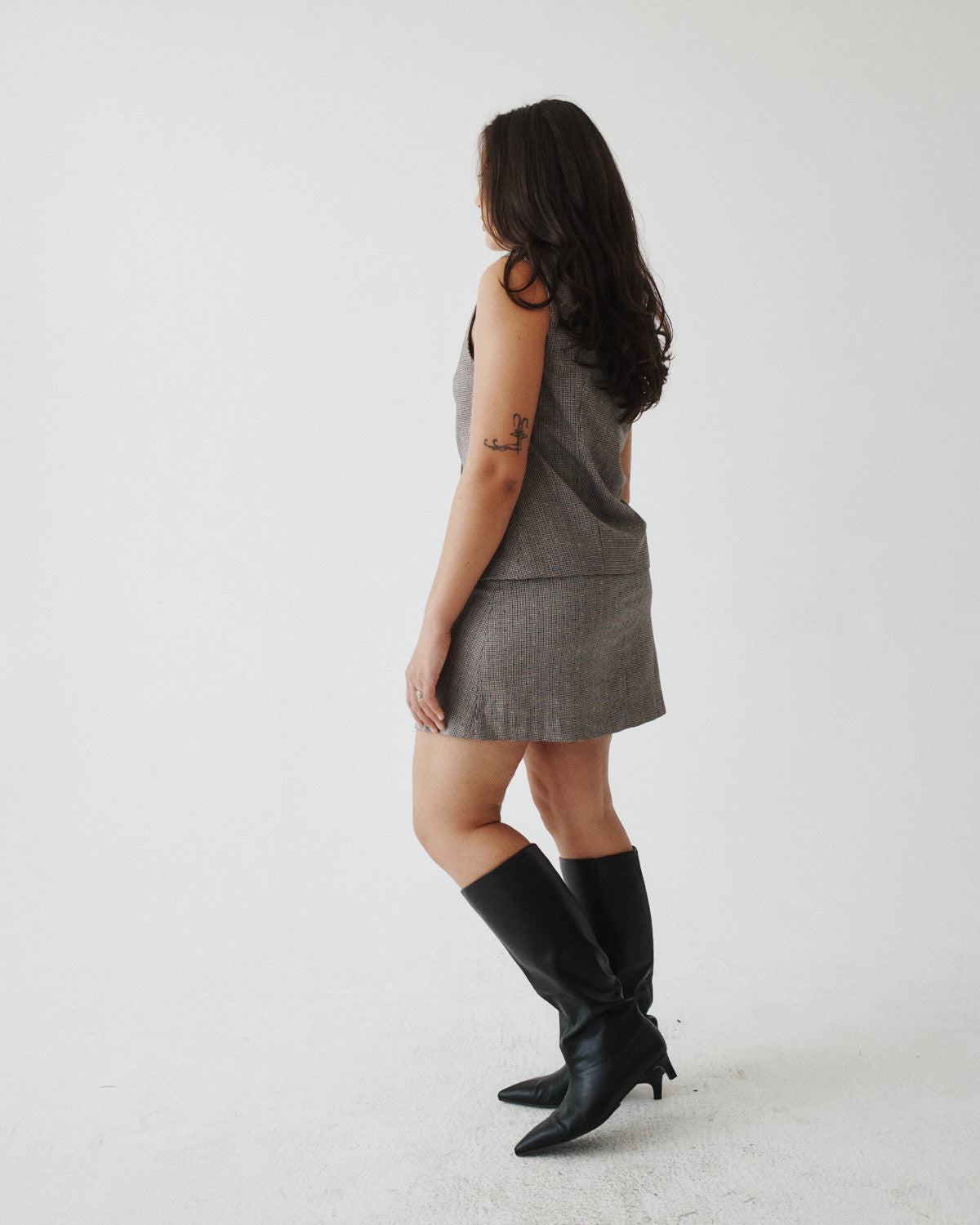The A-LINE MINI SKIRT is a high-rise, a-line mini skirt tailored with moderate stretch for a modern, feminine fit. Most importantly, it is sourced from deadstock materials. Designed to fit just right—go with your regular size for the ideal fit.