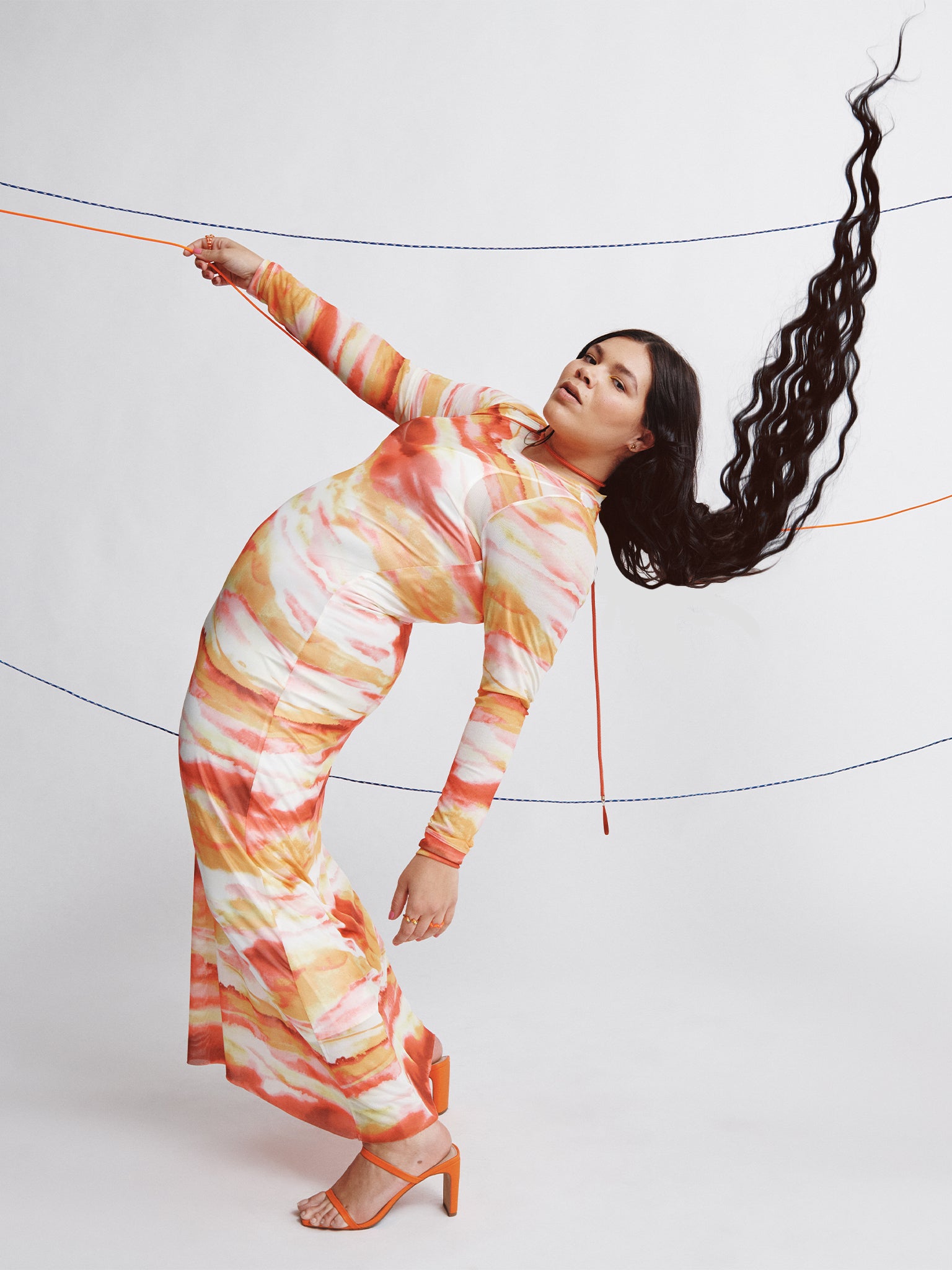 Crafted from deadstock 95% Polyester, 5% Spandex for a soft, flexible feel. This style fits true to size. Tiff and Marquis wear a size XL. Machine wash cold, hang to dry. Imported.