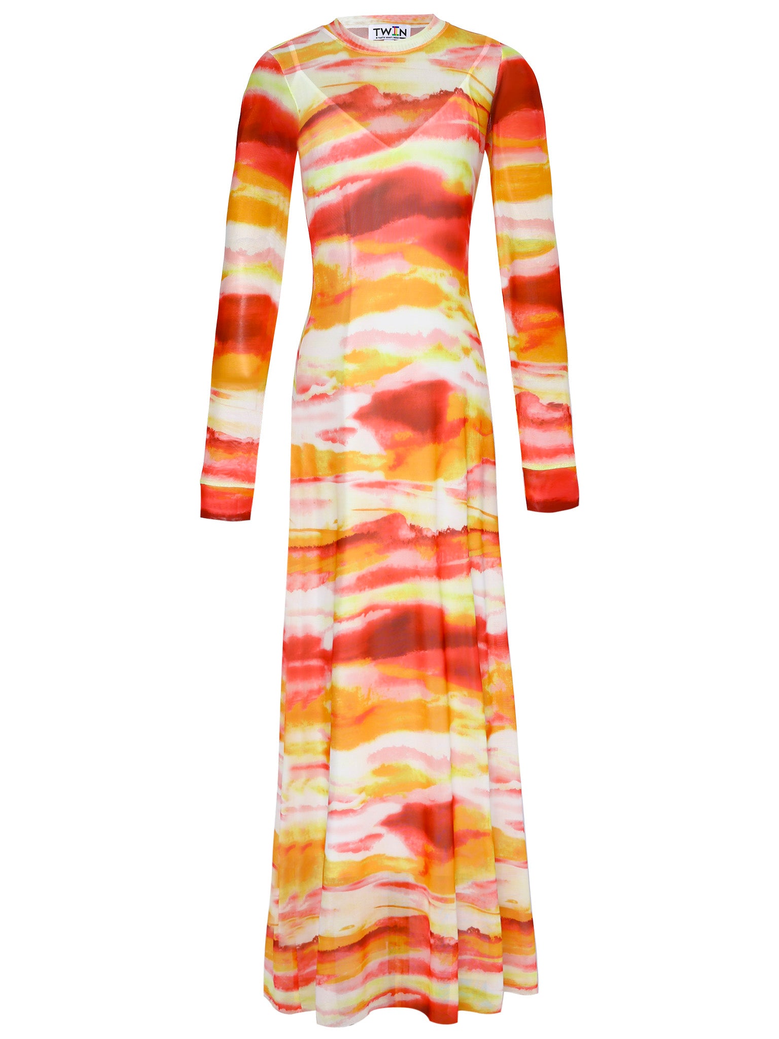 Sleek, stretchy, and endlessly wearable. This maxi-length style features a crew neck, long sleeves, and a removable slip lining for layered versatility. An easy silhouette that flows with you from day to night.